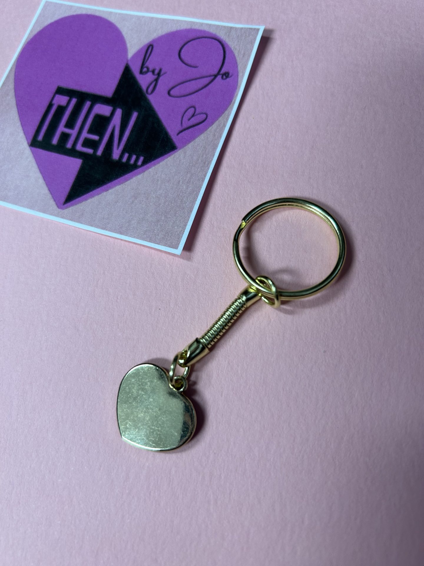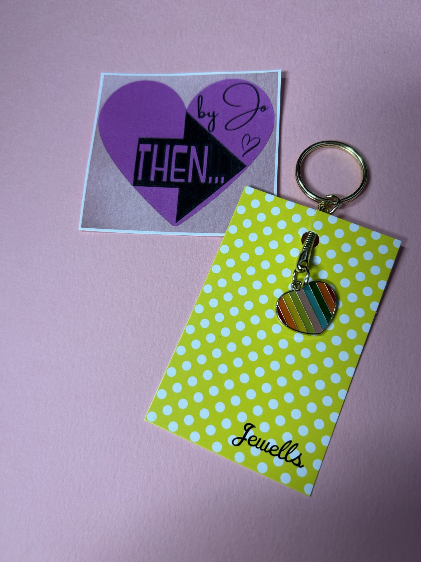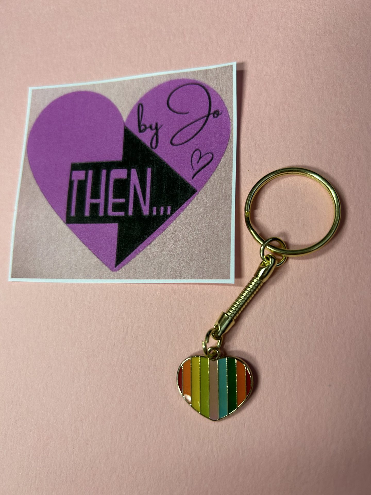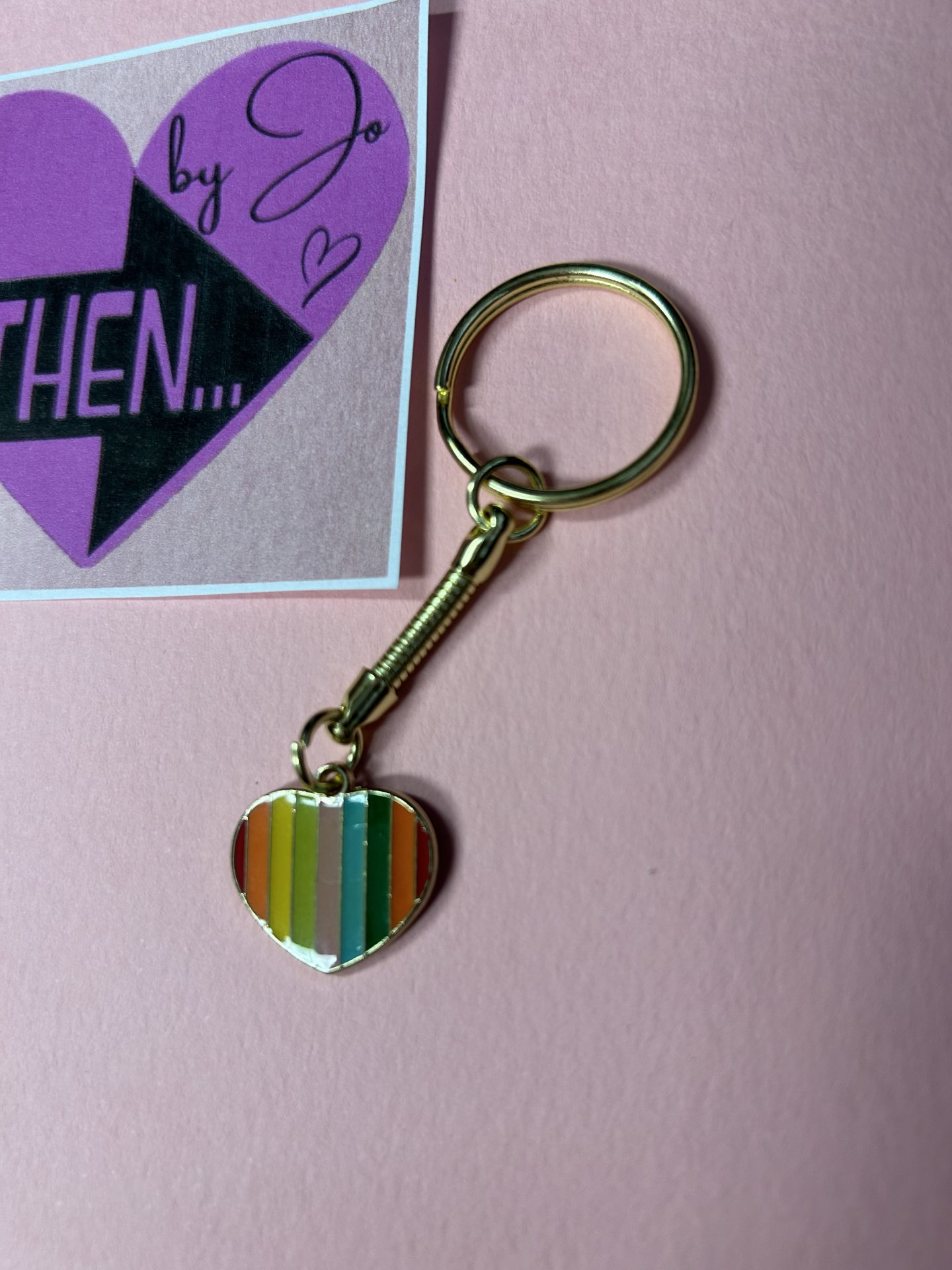 - Gold Plated Enamel Striped Heart Keyring , total length 7cm approx.