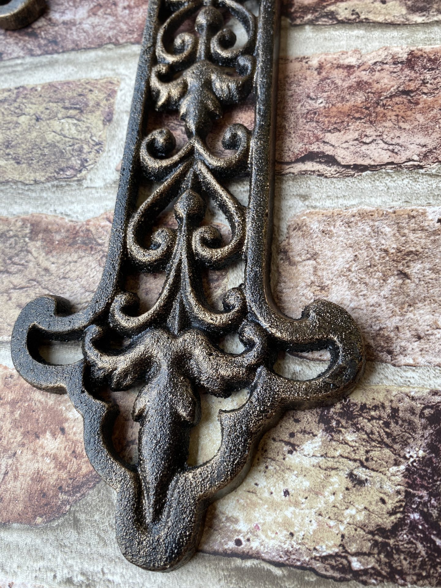 Finished in a deep bronze colour reminiscent of Gothic and Victorian styles, this cross is suited for both indoor and outdoor settings. Hole for wall mounting with screw (not supplied).