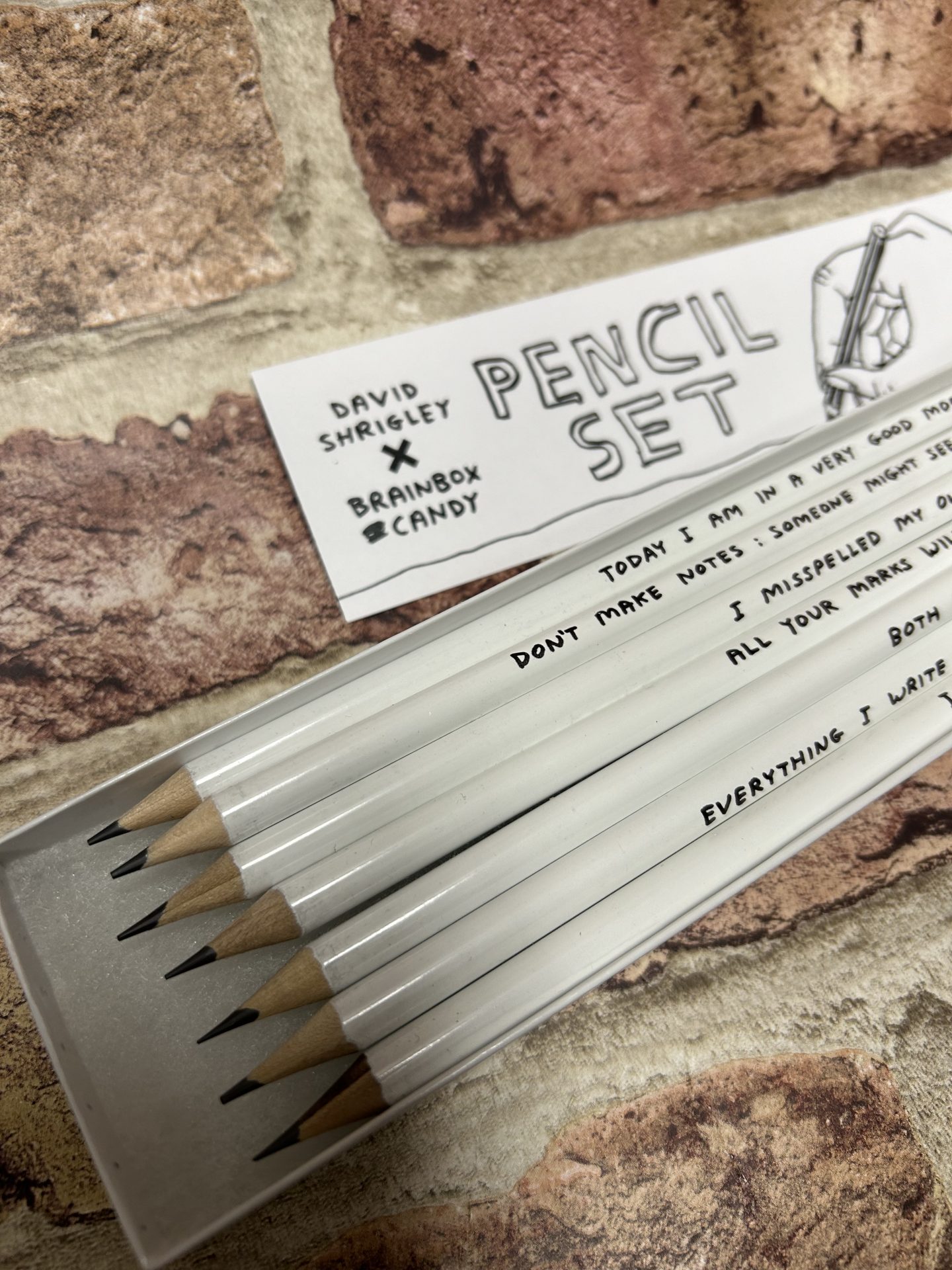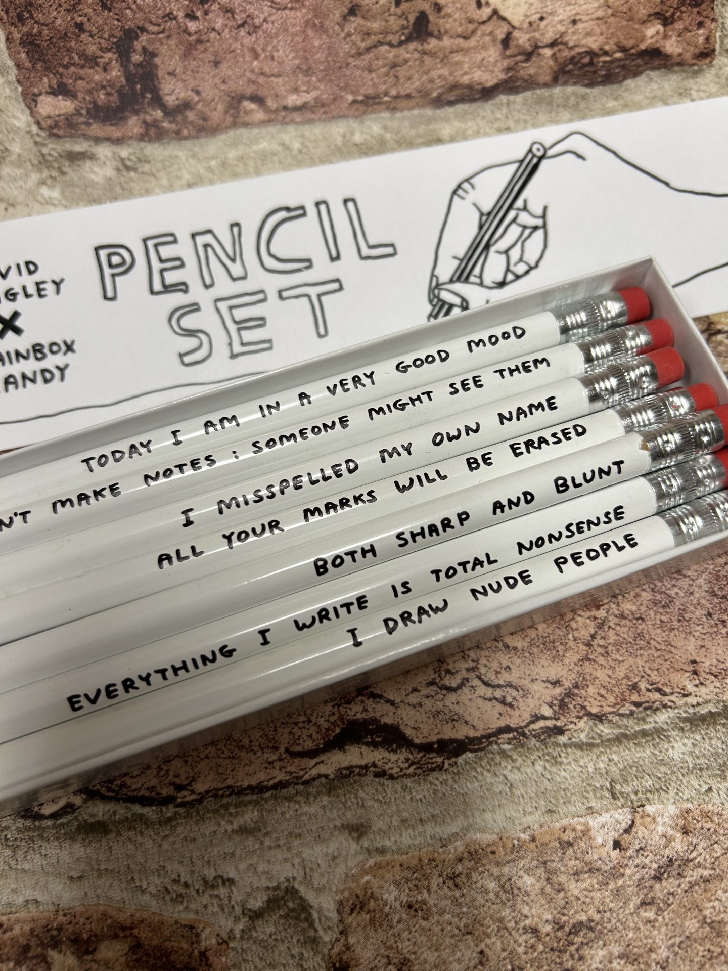 Here we have the brand new David Shrigley Pencil set from Brainbox Candy.