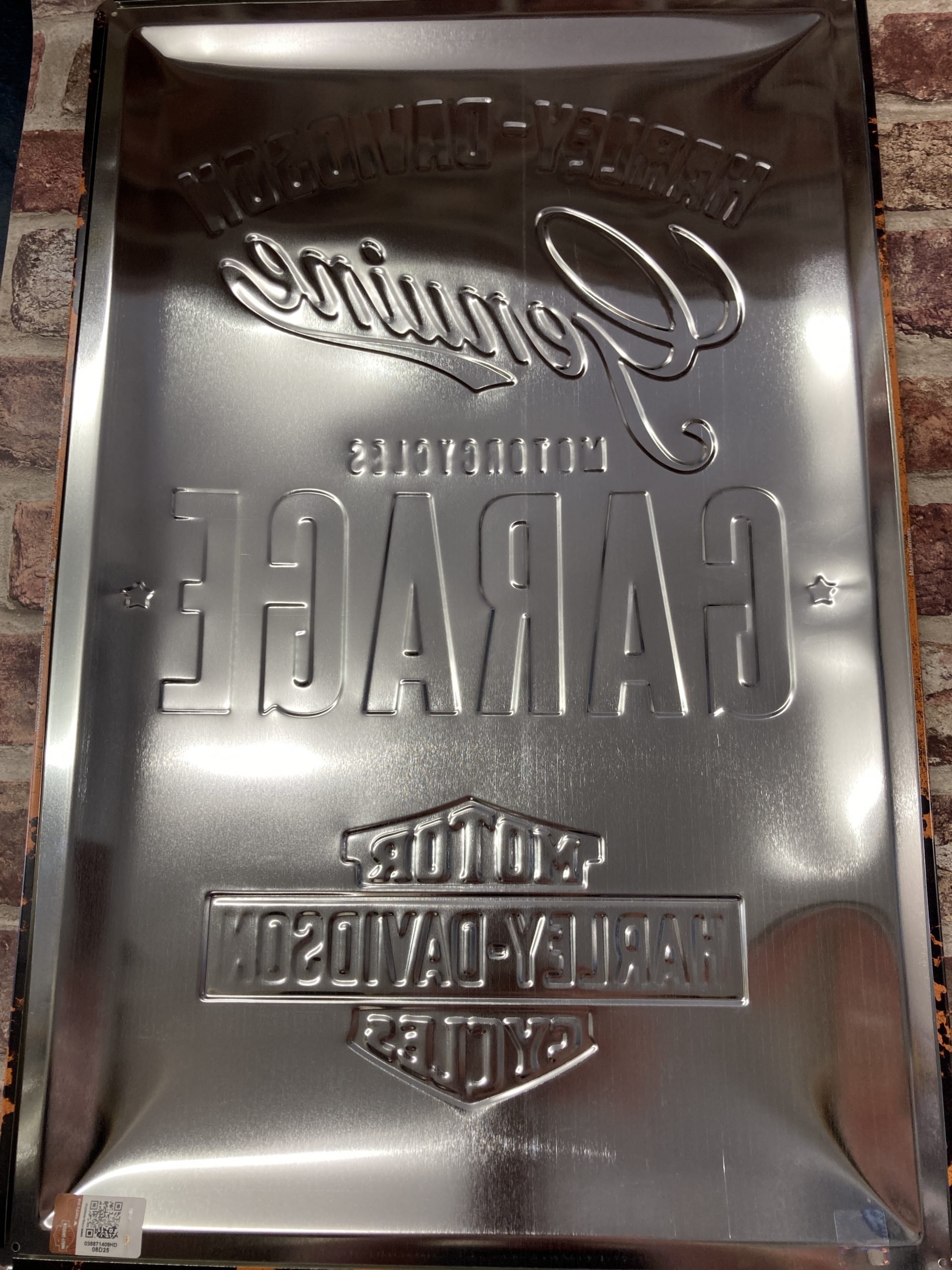 Giant retro style embossed Tin metal sign , has Four holes in the corners for you to screw it on to the wall of your choice. embossed 3d style design.