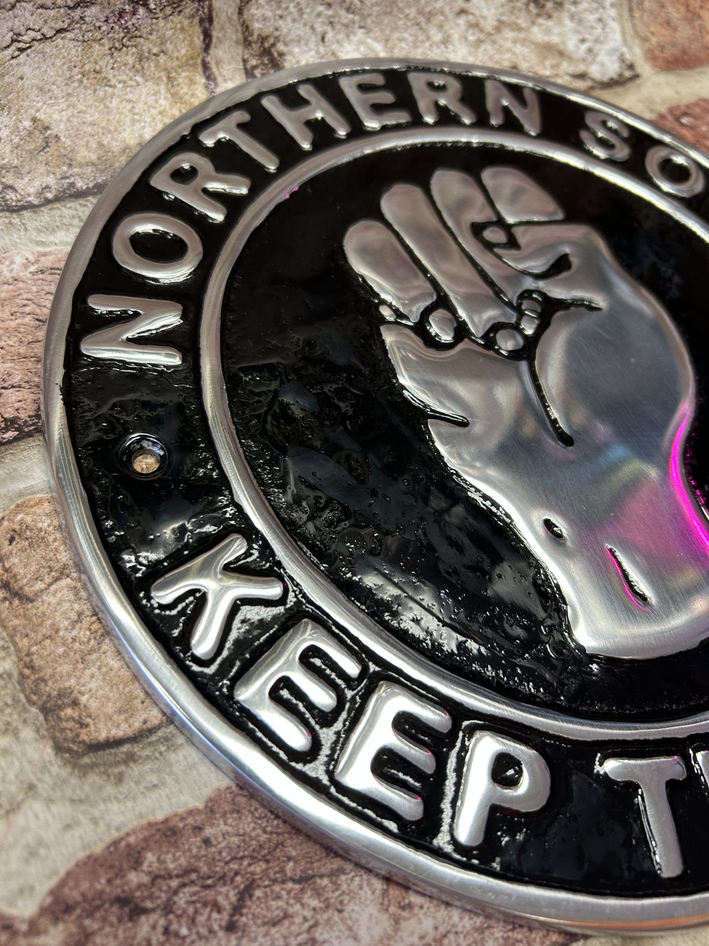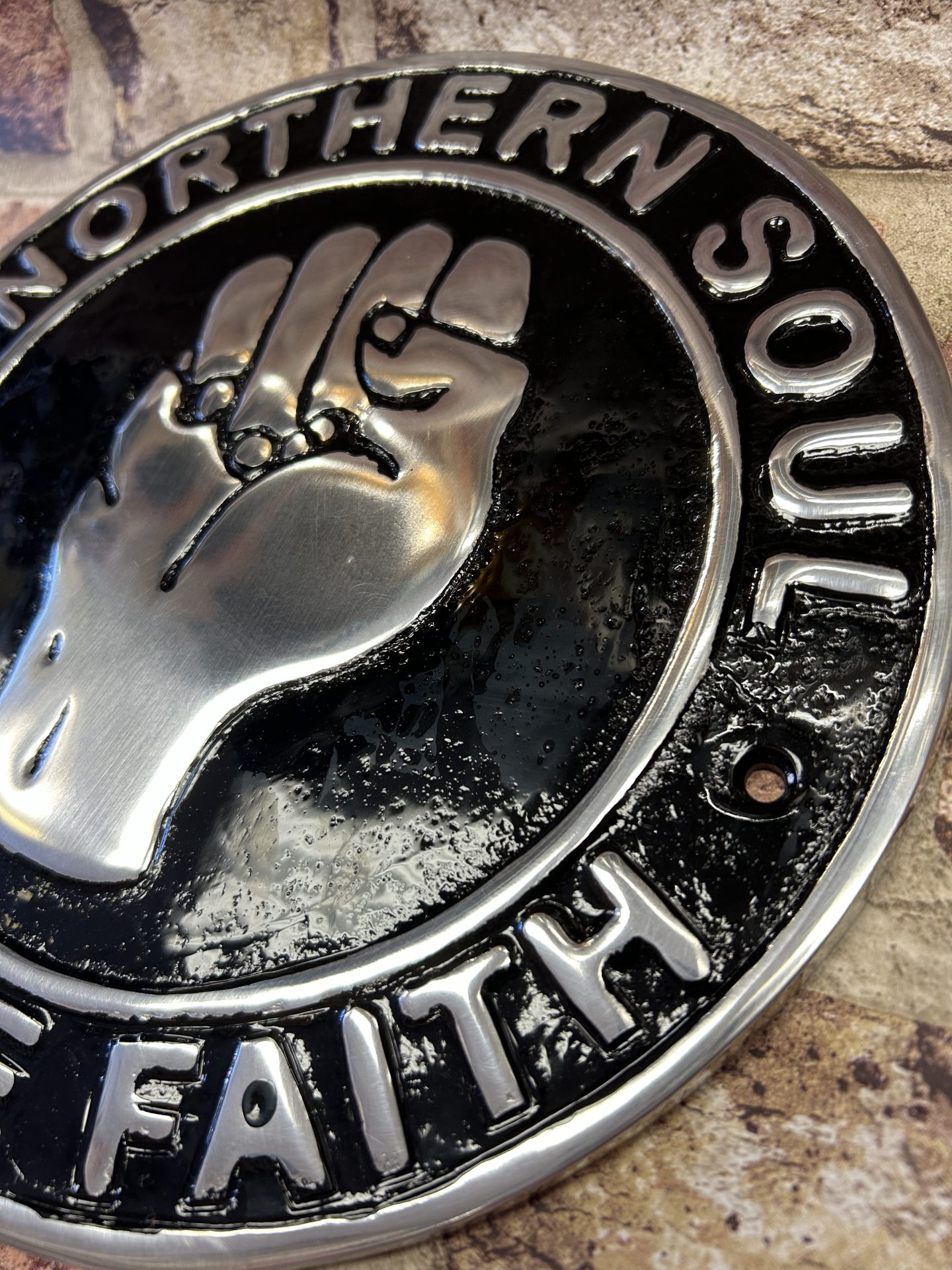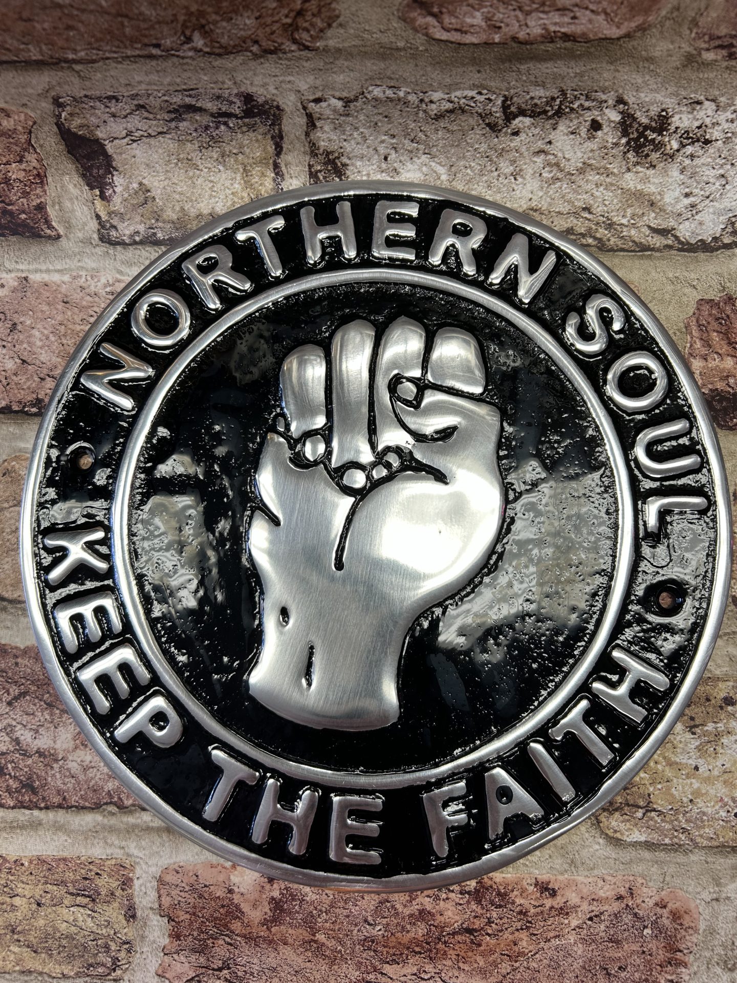 Northern Soul Keep the faith , Polished aluminium wall plaque / sign.