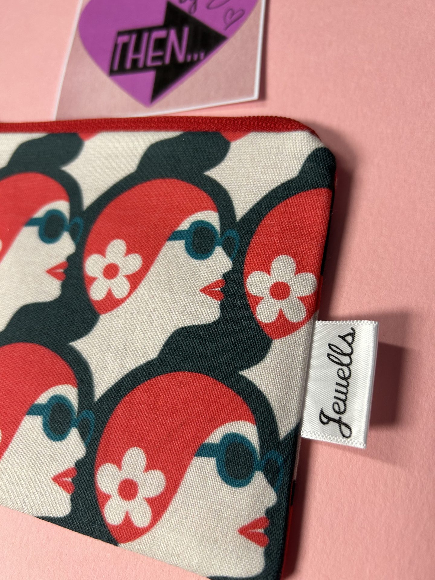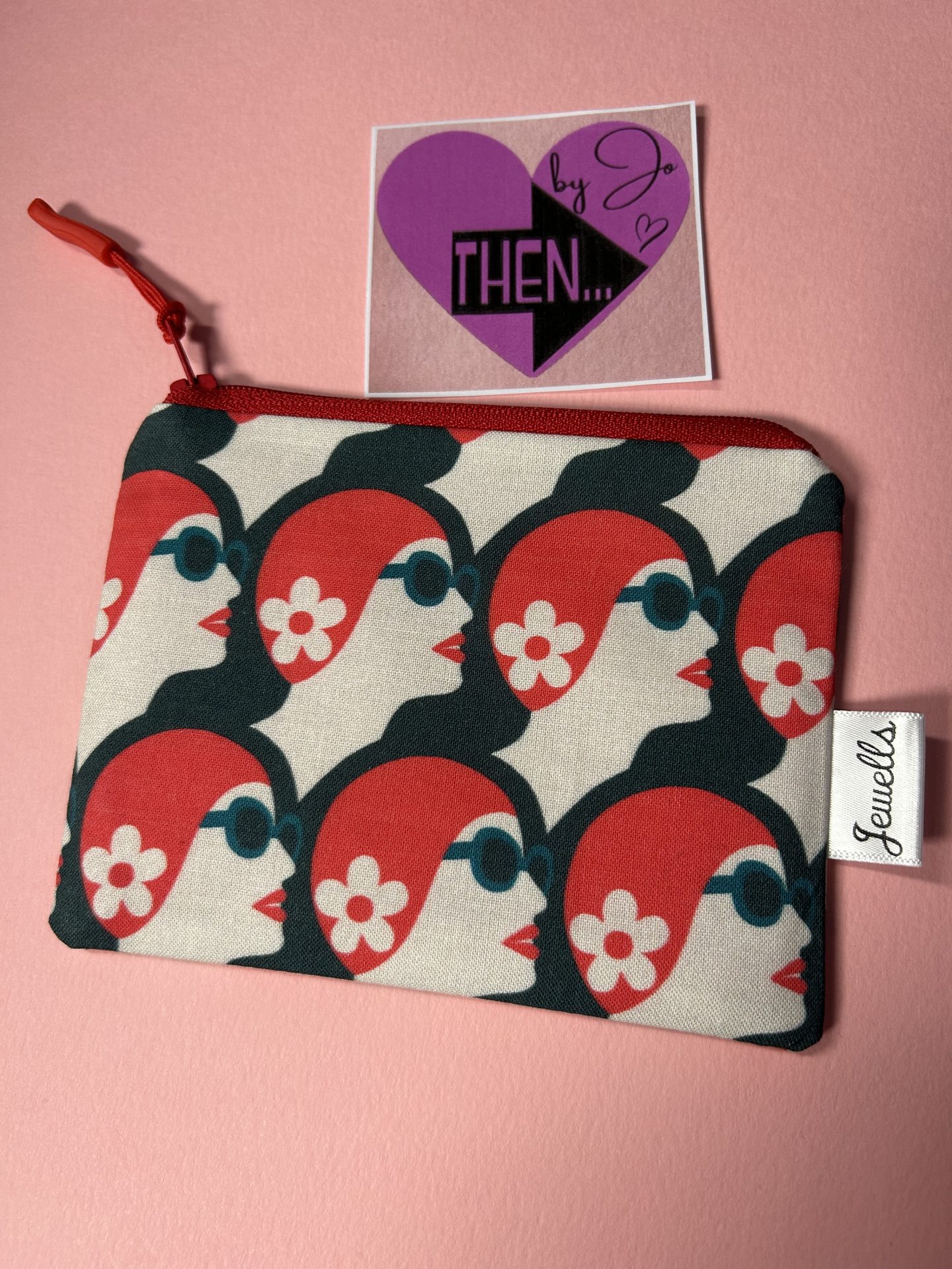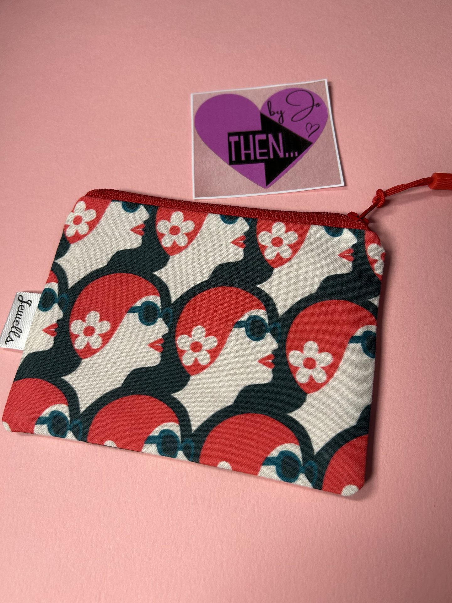 - Retro Flower Red Swimming Hat, fabric coin purse / pouch large, 14cm x 10.5 approx. With zipped top opening.