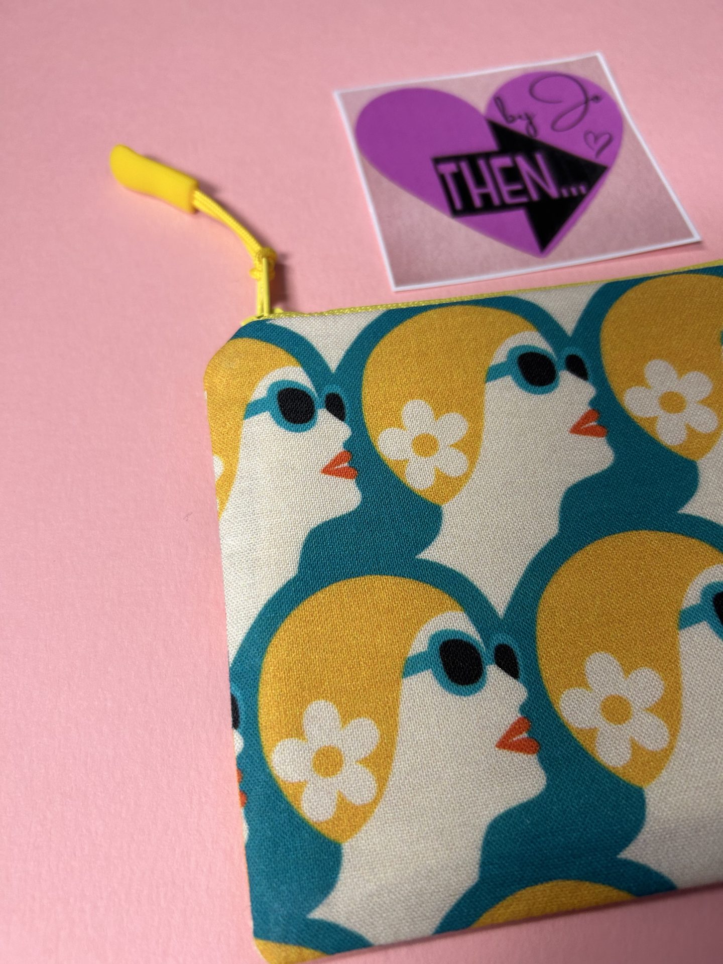• Retro Flower Yellow Swimming Hat, fabric coin purse / pouch large, 14cm x 10.5 approx. With zipped top opening.