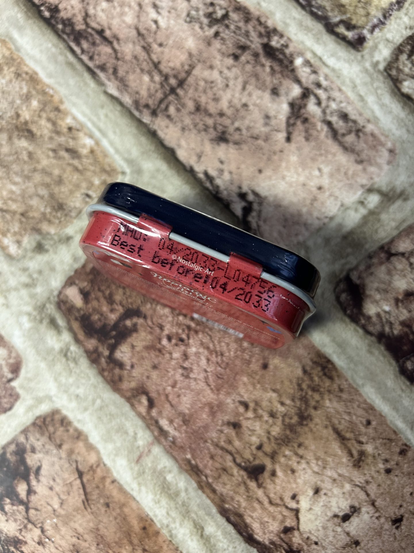 A small embossed hinged tin 6x4x1.6cm packed with approx 80 strong sugar free mints.