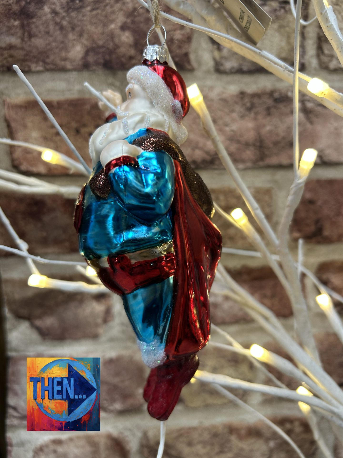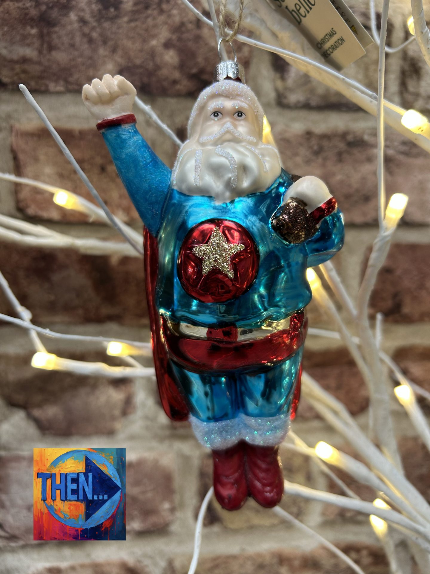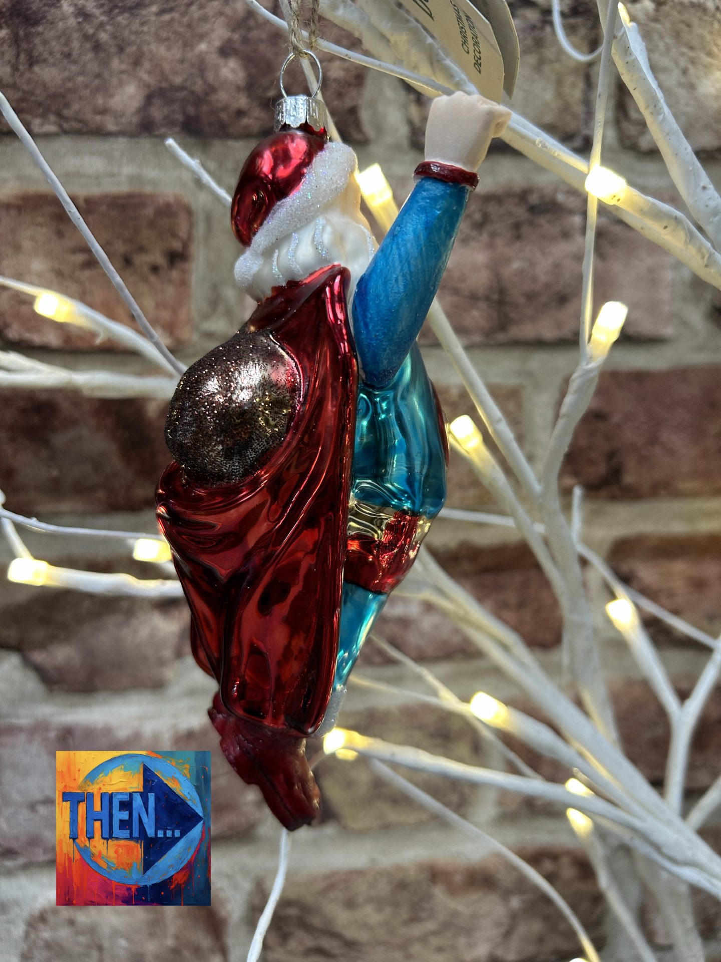 Sleigh no more, Super Santa Decorative Hanging Bauble Decoration.